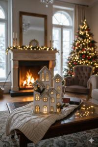 Con múltiples ventanales, tejados nevados y ramas decorativas, esta pieza transmite la elegancia de un pueblo navideño iluminado. Su diseño es perfecto para destacar en tu sala o recibidor. Darle a tu hogar un toque mágico esta Navidad, ¡Quedan muy pocas!