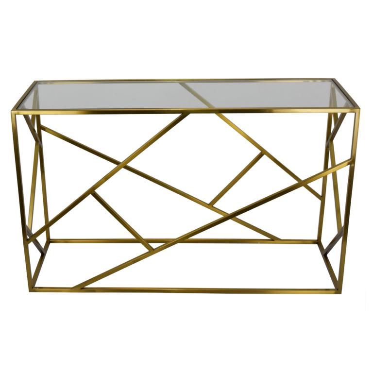 Consola Dorada Con Cubierta De Vidrio Y Diseño Geométrico