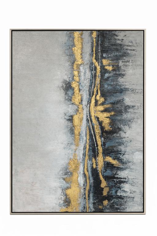 Cuadro abstracto gris con acentos dorados contemporáneo