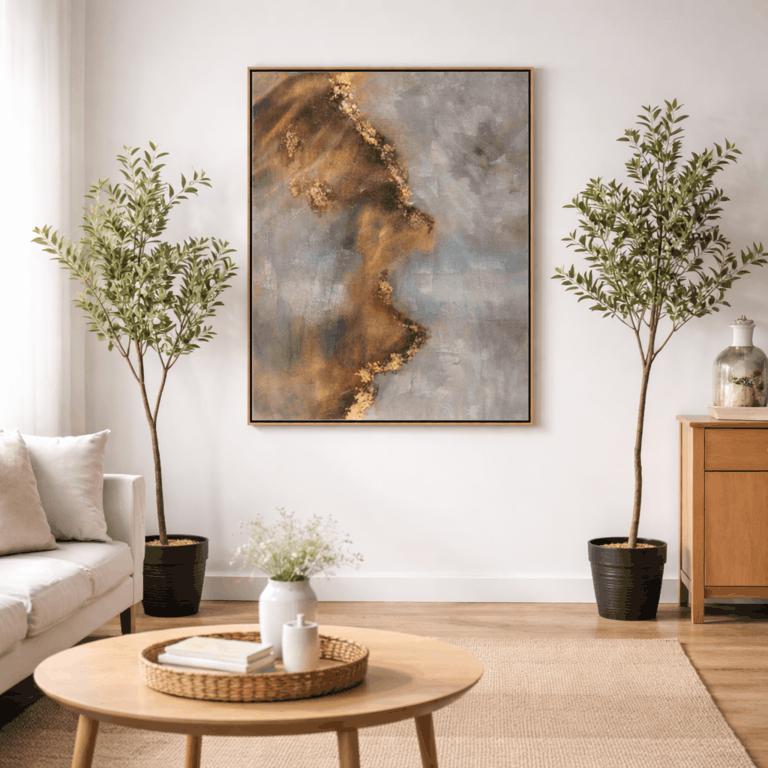Cuadro abstracto gris y dorado elegante moderno