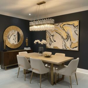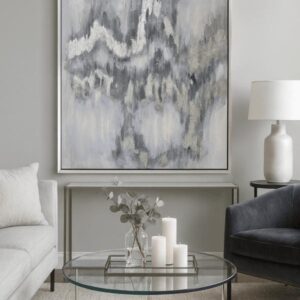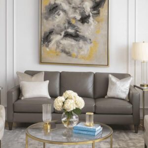 Cuadro abstracto gris con acentos dorados contemporáneo