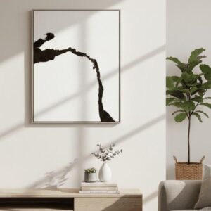 Cuadro abstracto en marrón y blanco con trazos lineales