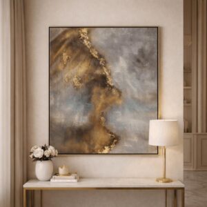 Cuadro abstracto en tonos dorados y grises con acabado artístico