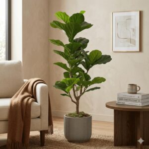Árbol artificial tipo ficus lyrata en maceta negra 120cm