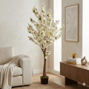 Árbol artificial de flor de durazno en maceta negra 180cm