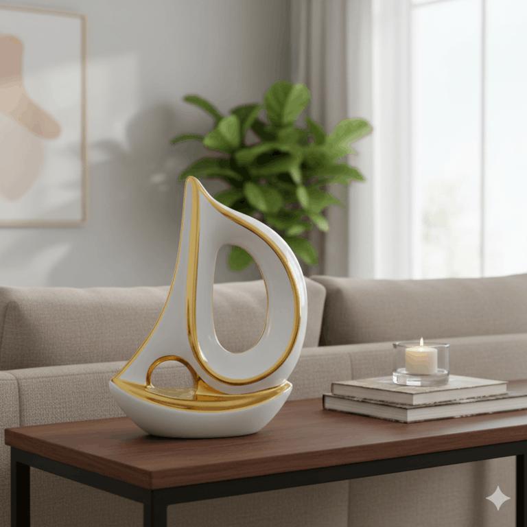 Escultura De Velero Blanco Y Dorado Decorativa