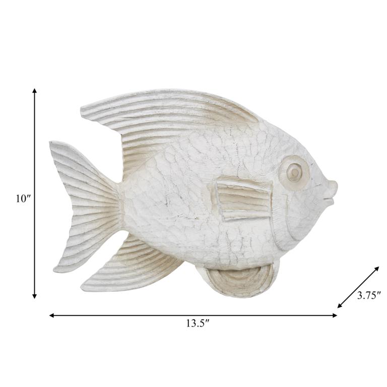 Figura Decorativa De Pez En Resina Con Acabado Blanco Envejecido