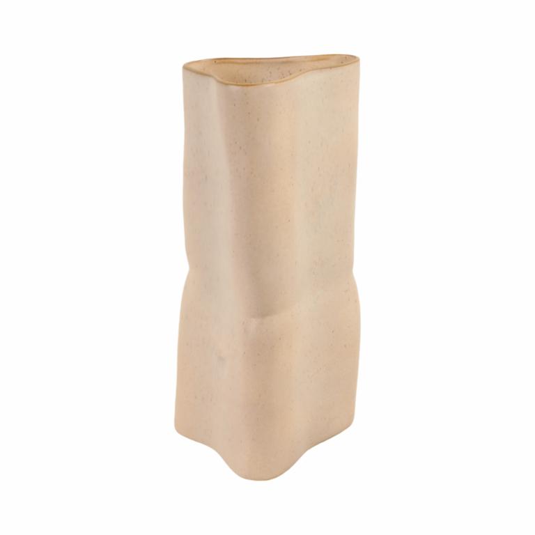 Jarrón Cilíndrico Redondo De Cerámica Con Lados Abollados
