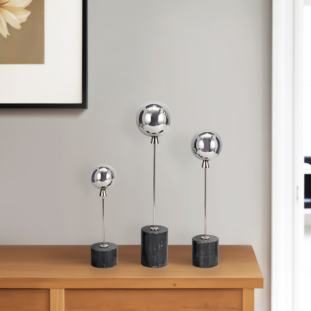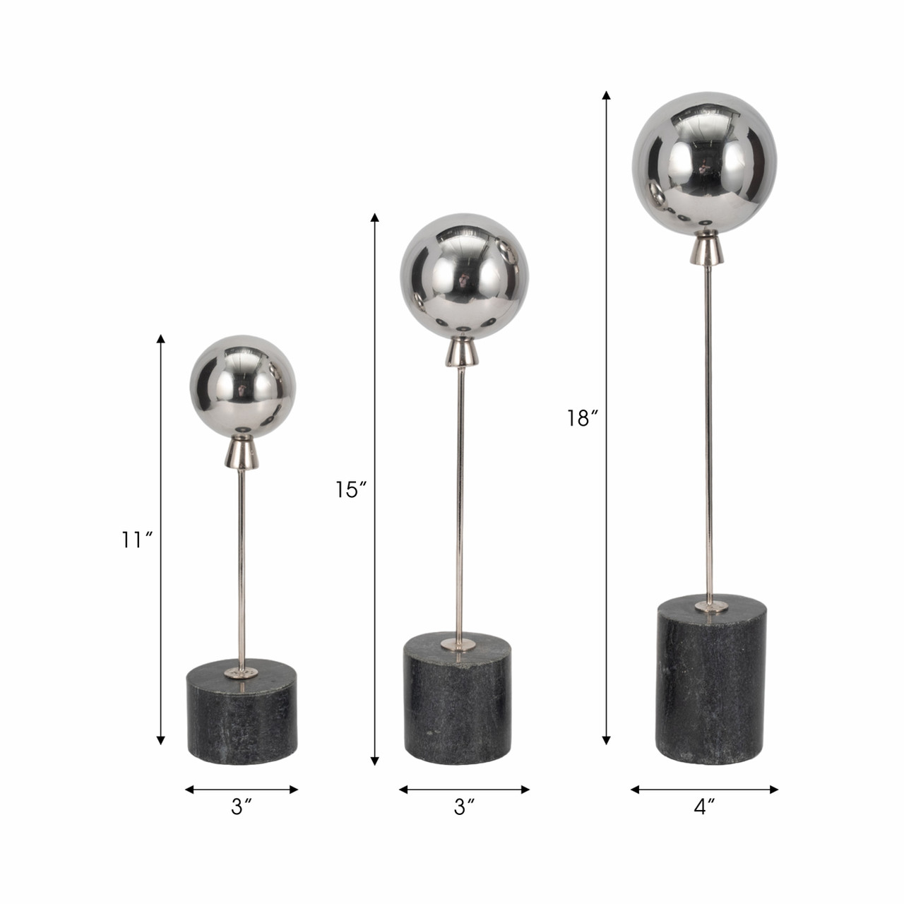 Globos Decorativos Plateados Con Base De Mármol Set De 3