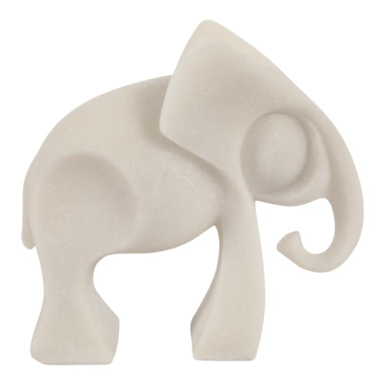 Escultura De Elefante “Ninove” En Resina Cuarzo Blanca
