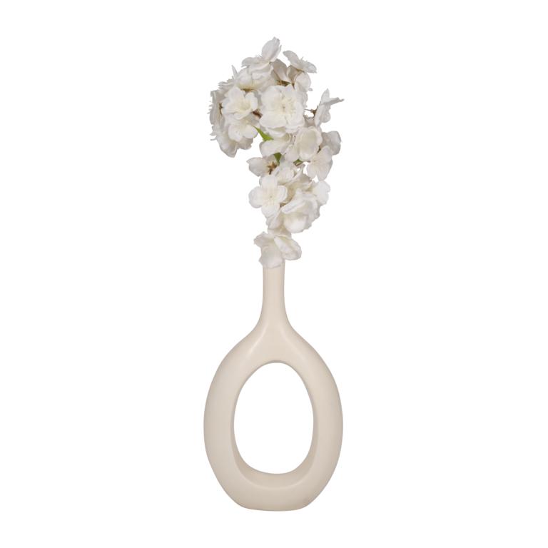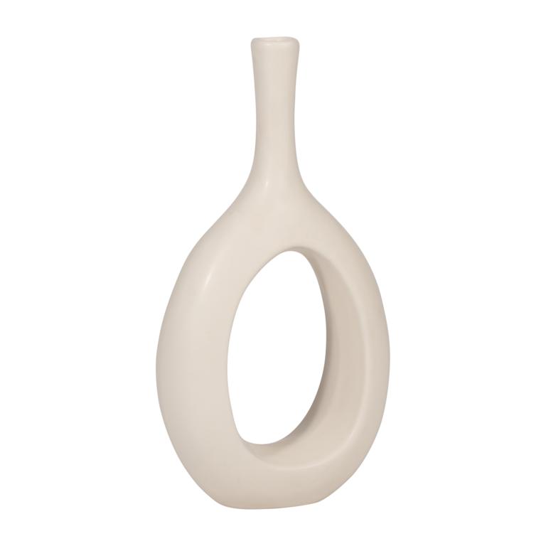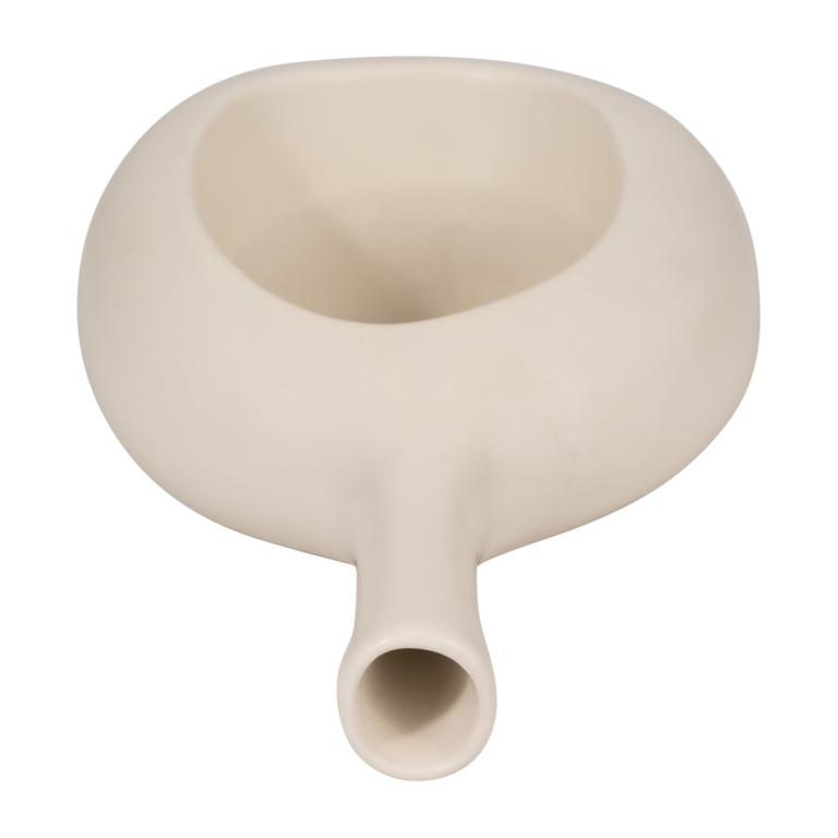Jarrón Redondo De Cerámica Con Boca Larga Acabado Brillante Crema