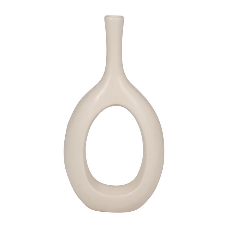 Jarrón Redondo De Cerámica Con Boca Larga Acabado Brillante Crema