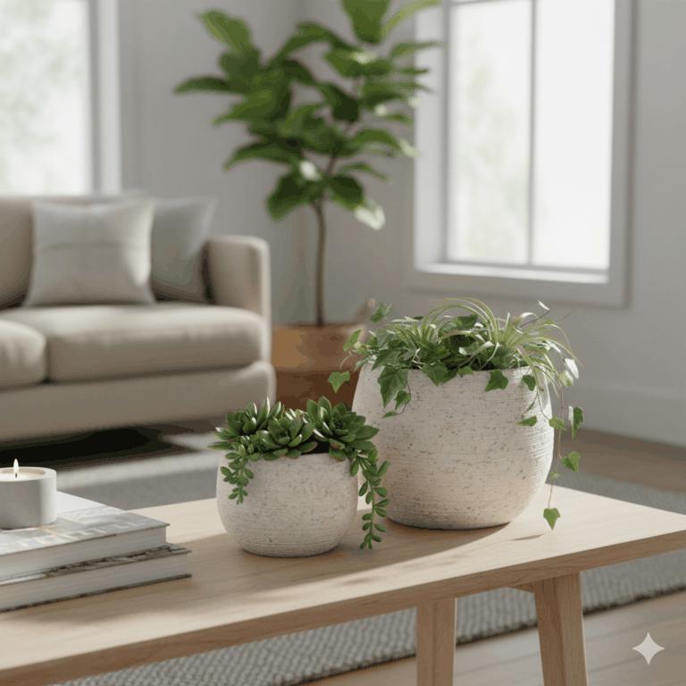 Macetas Redondas Jaspeadas Blanco Y Gris Set De 2