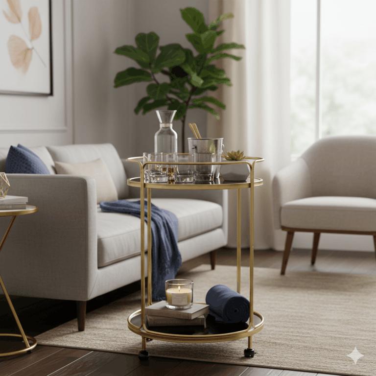 Mesa Servibar Redondo Dorado Con Doble Charola