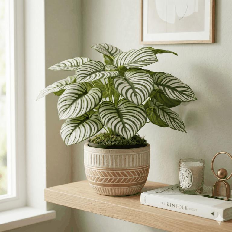 Planta artificial calathea rayada en maceta negra
