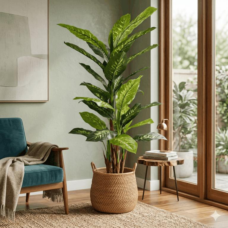 Planta artificial tipo dieffenbachia alta en maceta negra 150cm