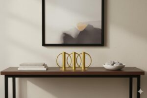 Meta descripción: Candelabro dorado moderno con diseño geométrico. Acento decorativo elegante para cualquier espacio.