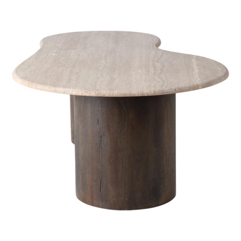Mesa De Centro Orgánica En Mármol Blanco Y Base De Madera