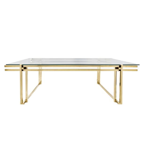 Meta descripción: Mesa de centro rectangular con base dorada y cubierta de vidrio. Elegancia y modernidad para tu sala.
