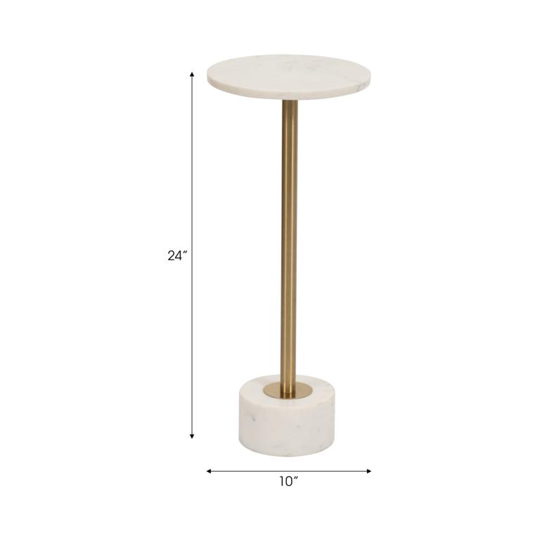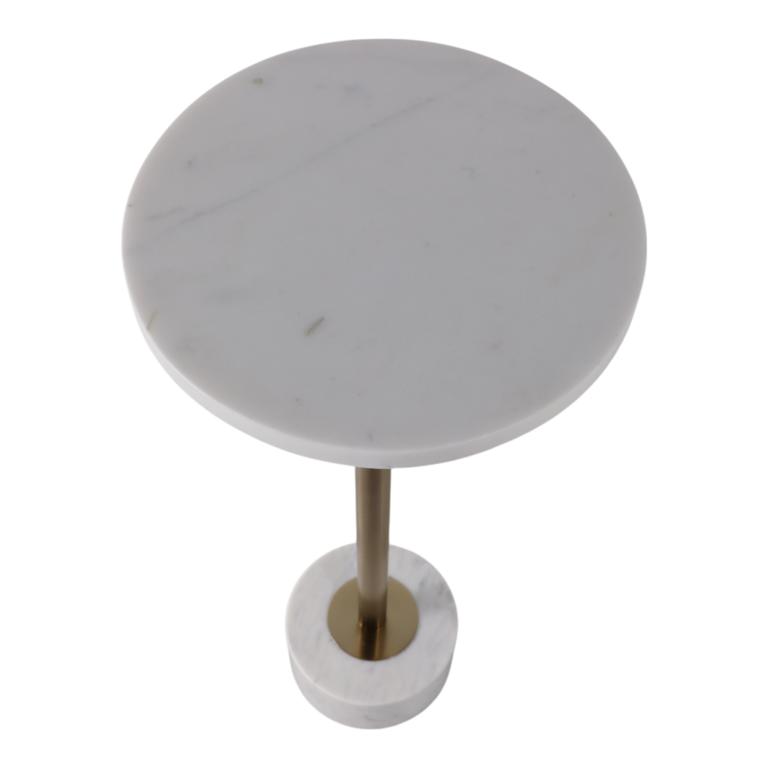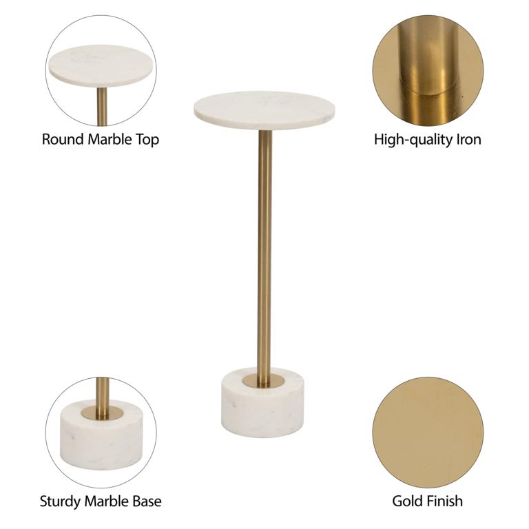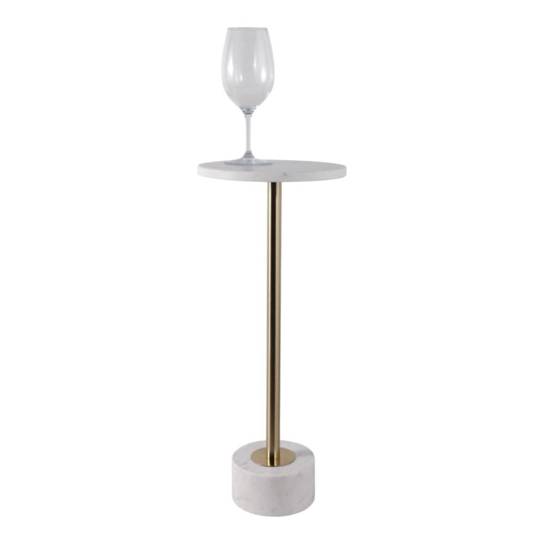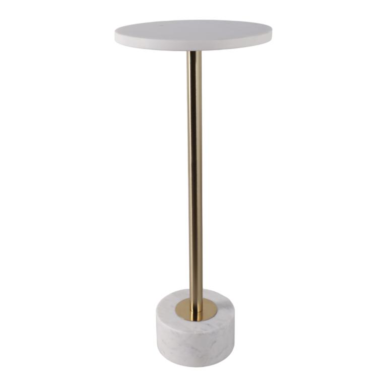 Mesa Lateral Redonda Con Base Dorada Y Mármol Blanco