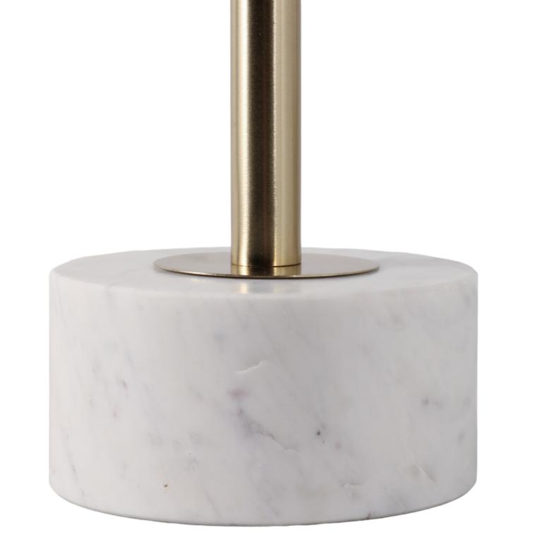 Mesa auxiliar con cubierta de mármol blanco y base metálica dorada estilizada. Su diseño es versátil y aporta elegancia a cualquier ambiente. Sugerencias de uso Ideal junto a sillones, sofás o como mesa de apoyo en la recámara. Estilo de decoración Moderno, glam y minimalista. Combinación con otros estilos Combina con mobiliario en tonos neutros, madera clara o acabados metálicos. Material: Mármol y metal. Meta descripción: Mesa lateral redonda de mármol blanco con base dorada. Perfecta para un estilo moderno y sofisticado.
