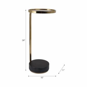 Mesa Lateral Redonda Negra Y Dorada Con Base Metálica