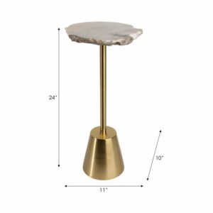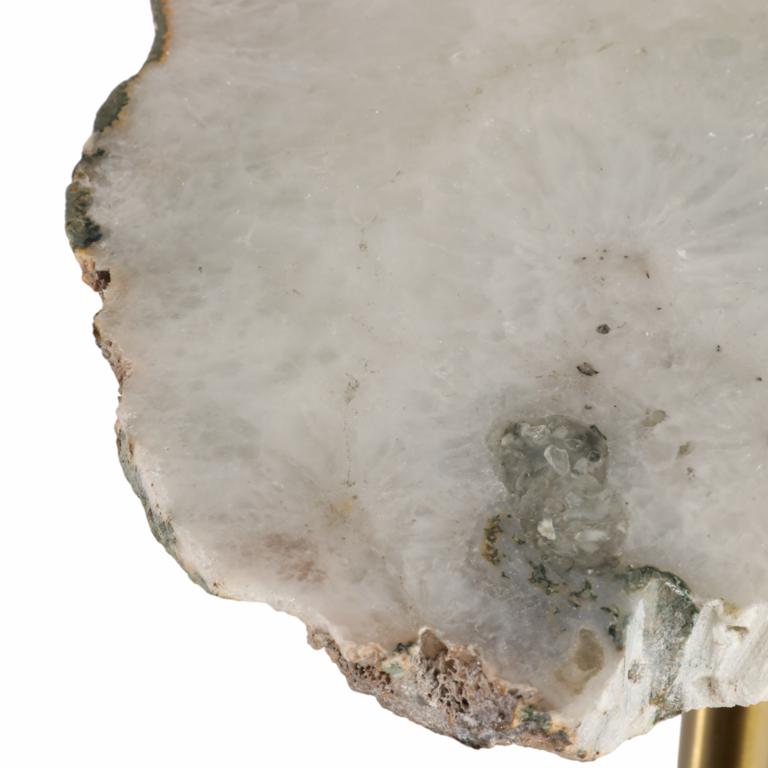 Mesa Lateral Redonda Con Base Dorada Y Cubierta De Ágata Gris
