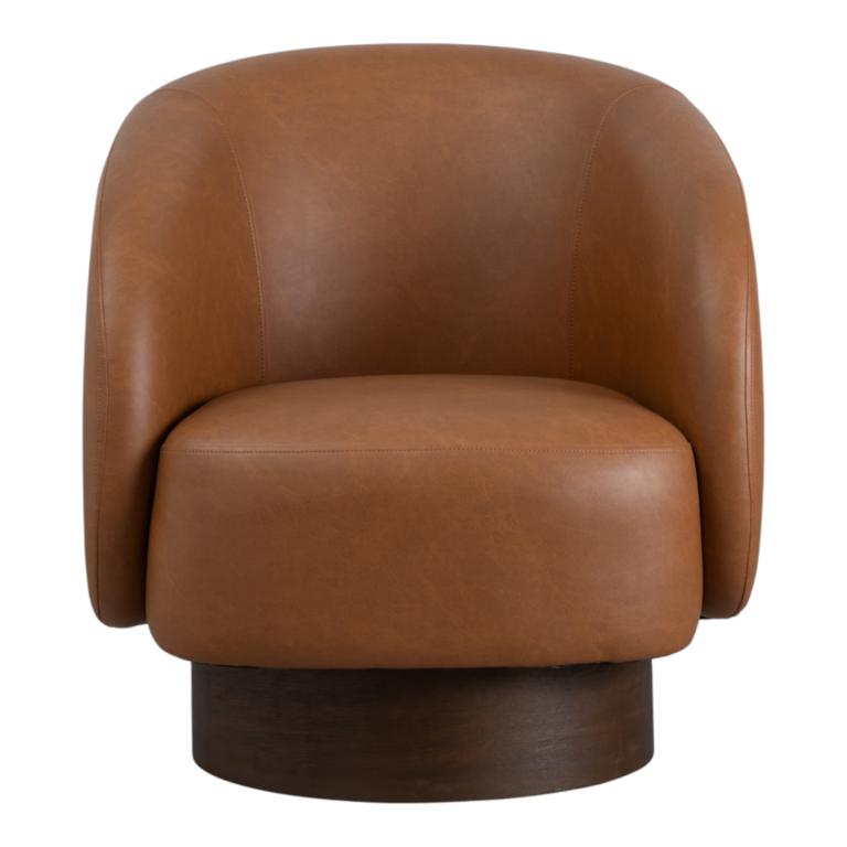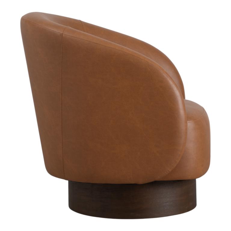 Sillón giratorio con diseño envolvente tapizado en piel sintética de alta calidad, que combina la elegancia del cuero con una base de madera robusta en tono oscuro. Su estructura curva no solo ofrece un confort excepcional, sino que añade un toque de sofisticación contemporánea a cualquier rincón. ¿Buscas una pieza que robe todas las miradas? Este sillón es el equilibrio perfecto entre funcionalidad y estilo de vanguardia. Aprovecha nuestro descuento y renueva tu living hoy.
