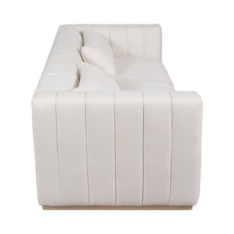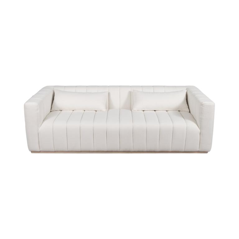 Sofá capitonado “Andreeva” que destaca por su imponente diseño lineal y contemporáneo. Tapizado en una tela de textura suave en color blanco , este sofá presenta un acolchado vertical rítmico que recorre toda su estructura, ofreciendo una estética minimalista pero llena de carácter. ¿Buscas una pieza central que combine lujo y máxima comodidad? Con su perfil bajo y cojines decorativos incluidos, el sofá Andreeva invita al descanso sin perder la elegancia. Eleva el estilo de tu sala y aprovecha nuestro envío exclusivo.